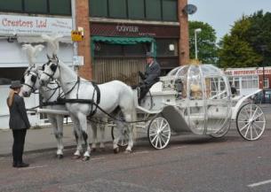 Mum announced that the carriage had arrived and was generating much interest from shop keepers and neighbours alike. As I stepped through the front door I felt like a star with people snapping away on cameras and mobiles and my Dad joked that they probably think I am famous, travelling in such a carriage. My maid of honour commented that it all felt like a dream. The white horses pulled away and we were off to the church – I have never seen my Dad looking as proud of me as he did that day. It was a surreal journey with cars beeping at as and more photos along the way.