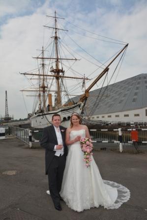 We then enjoyed another ride in the carriage to take us to the reception at Chatham Dockyard. Upon arrival we were handed champagne and then whisked off for photos whilst our guests enjoyed canapés. In true fairytale tradition, we were presented to our guests on the balcony of the Commissioners House and gave everyone a royal wave.