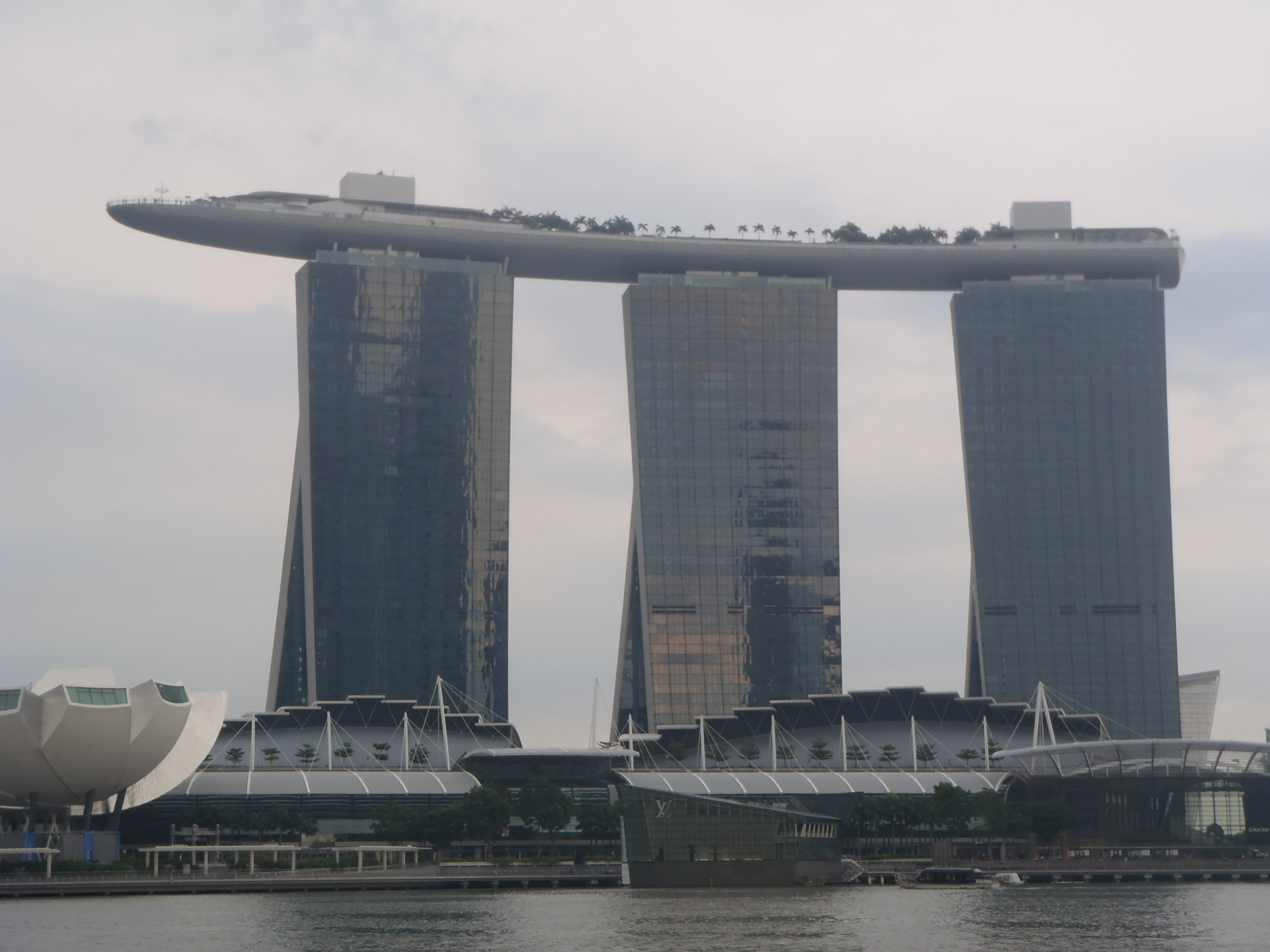 We then took a taxi to the Marina Bay Sands Hotel to meet a friend who Phil worked with some years ago and he now works at the landmark hotel. He gave us a guided tour including the observation deck; if Raffles is colonial luxury, this is modern day luxury and to think we could have had a friend’s rate room had we not already booked our accommodation in Singapore. Any fans of formula one will recognise the hotel from the TV – it has 3 distinctly imposing towers with what looks like a surfboard on the top. There are many high end shops inside and the mall even has a small river running through the middle. We watched a light show and enjoyed dinner at one of the hotel restaurants. It was then time to catch a late night flight onto Sydney.