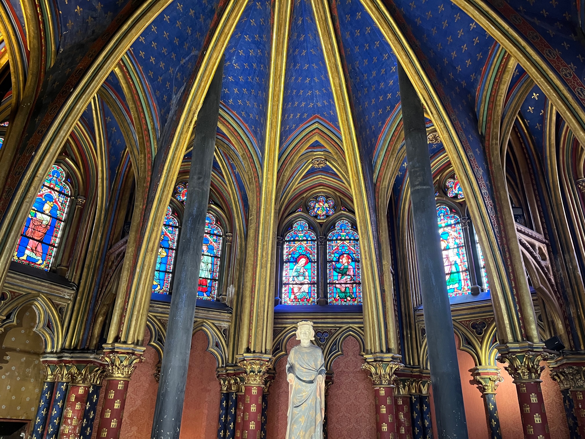 With Notre Dame closed to the public, we visited Sainte-Chapelle – somewhere I’d found when googling best sites to visit in Paris and certainly somewhere I hadn’t been before or even heard of. It’s a royal chapel in gothic style and was the home of the Kings of France until the 14th Century. The lower chapel is dark and rather underwhelming but when you climb the stairs to the upper chapel, you realise just why people rave about this attraction. There are 15 stained glass windows telling stories from the bible and a rose window at the west, representing scenes of the Apocalypse. All I could say was wow, it really took your breath away.
