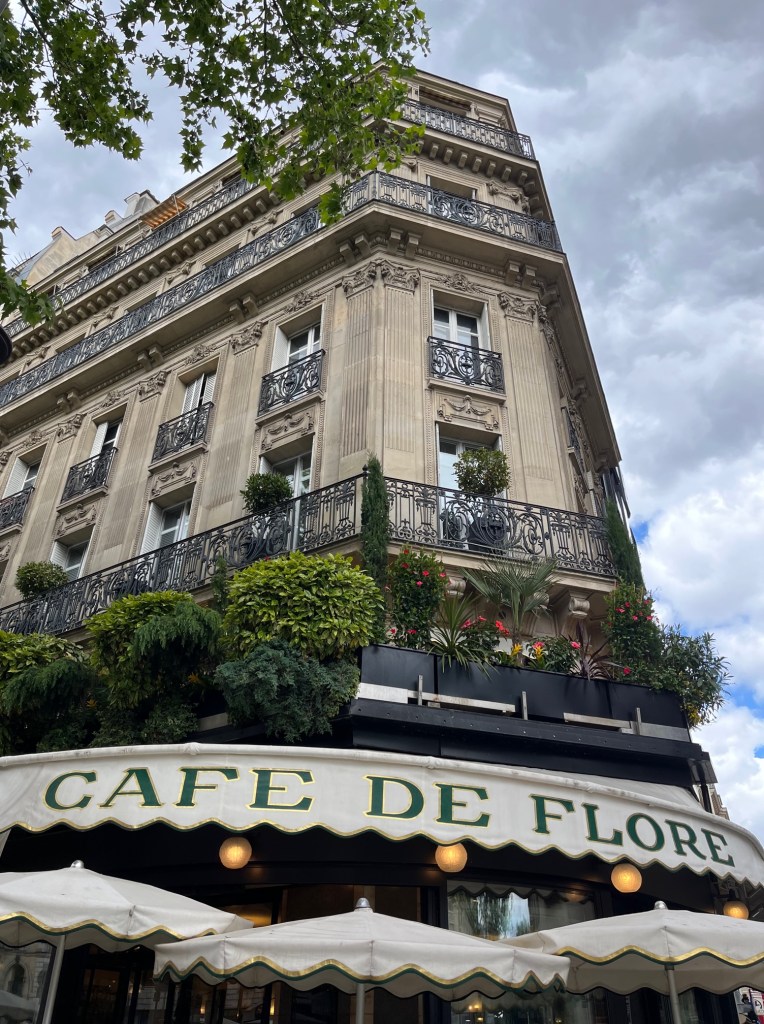 Flagging a little by now, having been up so long and covering quite a bit of Paris on foot, we headed for Café de Flore in the Saint-Germain des Pres district, another filming location from Emily in Paris, where she meets Thomas, but also legendary as once frequented by famous writers, philosophers, actors and designers including Ernest Hemingway, Jane Fonda, Brigette Bardot and Yves Saint-Laurent. It feels very luxurious and the waiters all have waistcoats and bow ties. The hot chocolate was to die for, just like liquid chocolate, if a little expensive at €9.50.