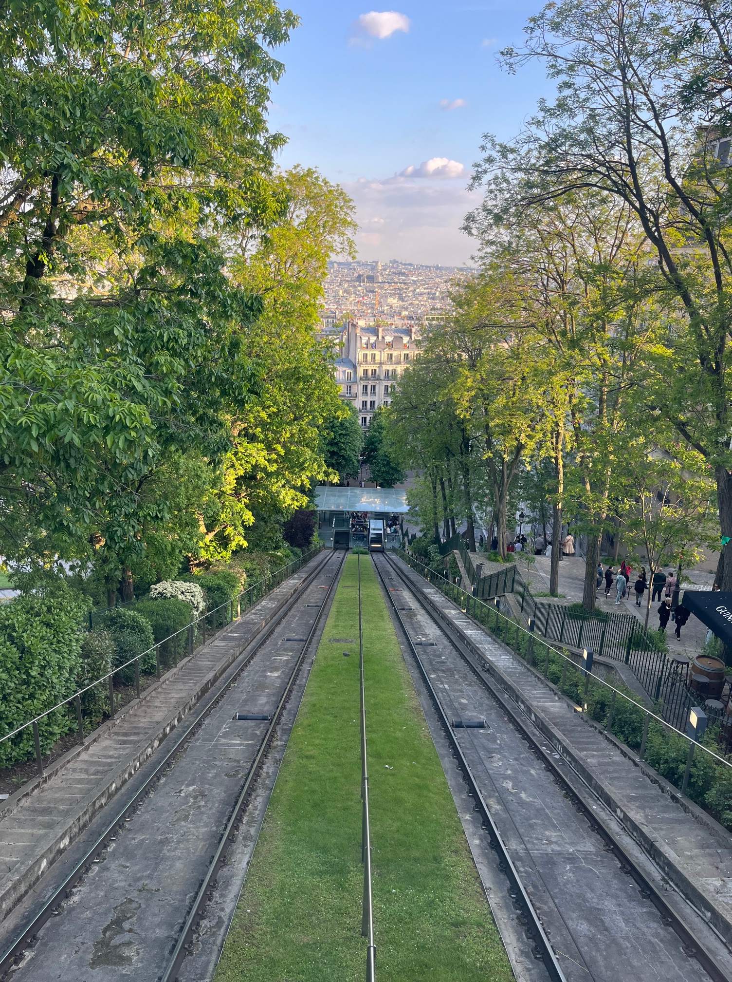 Time was now against us and we still needed to have our anniversary dinner, so we jumped on the metro to Abbesses. Just in case we needed any further exercise, we were greeted here by a 186 step spiral staircase to the street – should have definitely used the lift! It was then onto the funiculaire to take us up to the steps of the beautiful Sacre Coeur with wonderful views over the city.